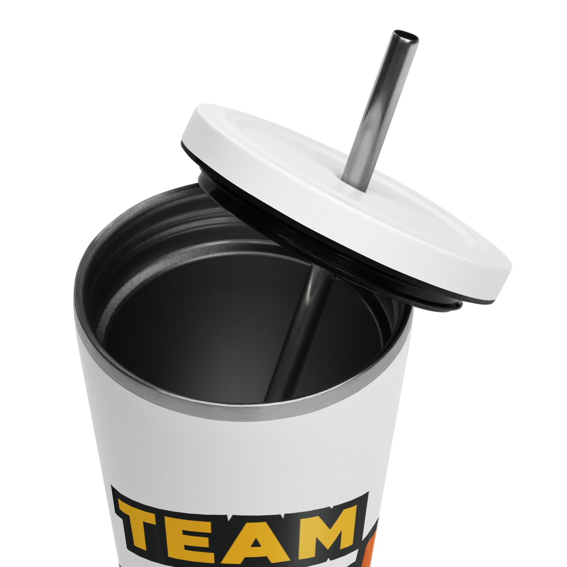 - Lid + straw included
